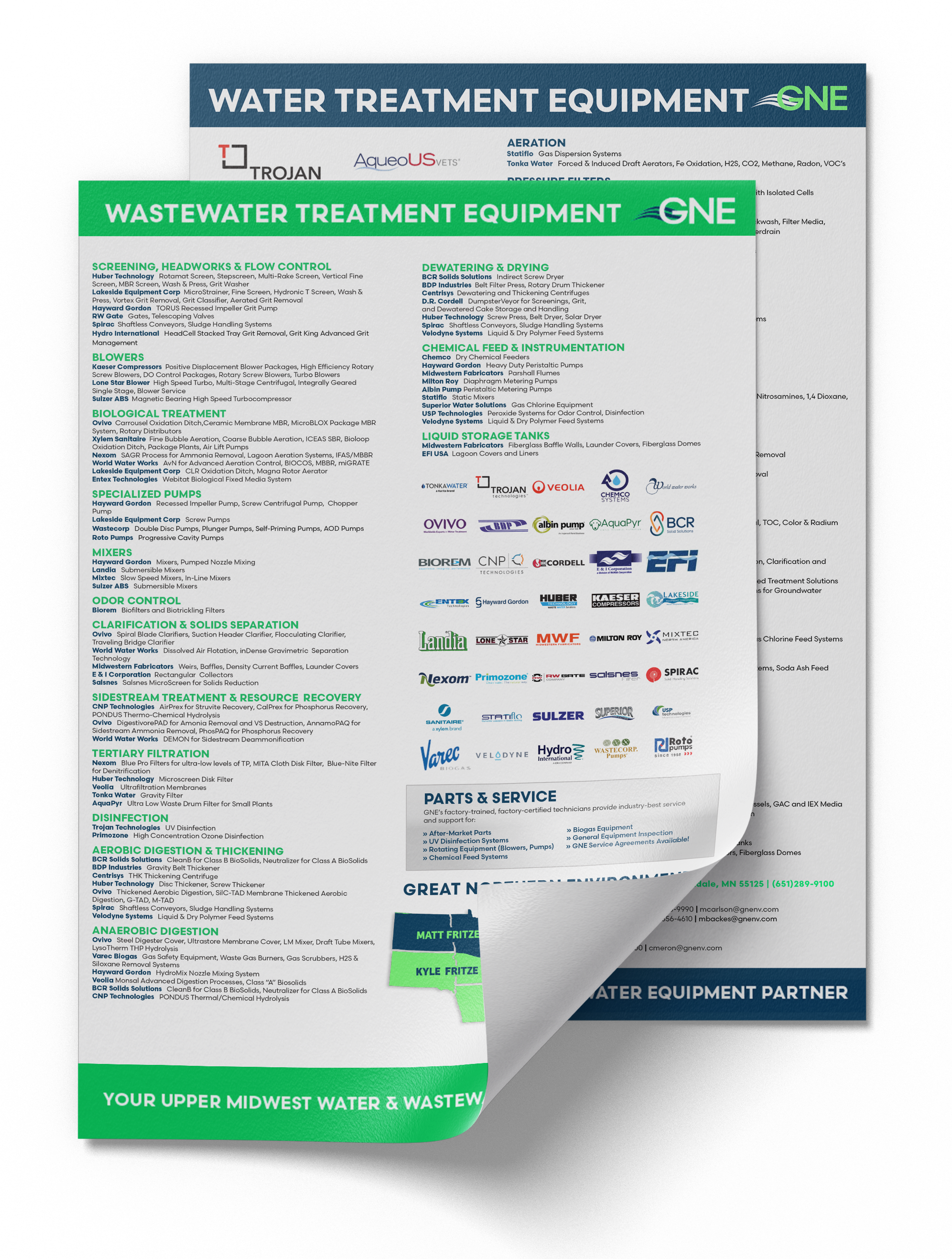 Great Northern Environmental (GNE) represents premier water and wastewater treatment equipment manufacturers. From storage tanks, mixers, and accessories, to complete water and wastewater plant process equipment, we are proud to offer reliable, economical, proven products as well as innovative new technologies.