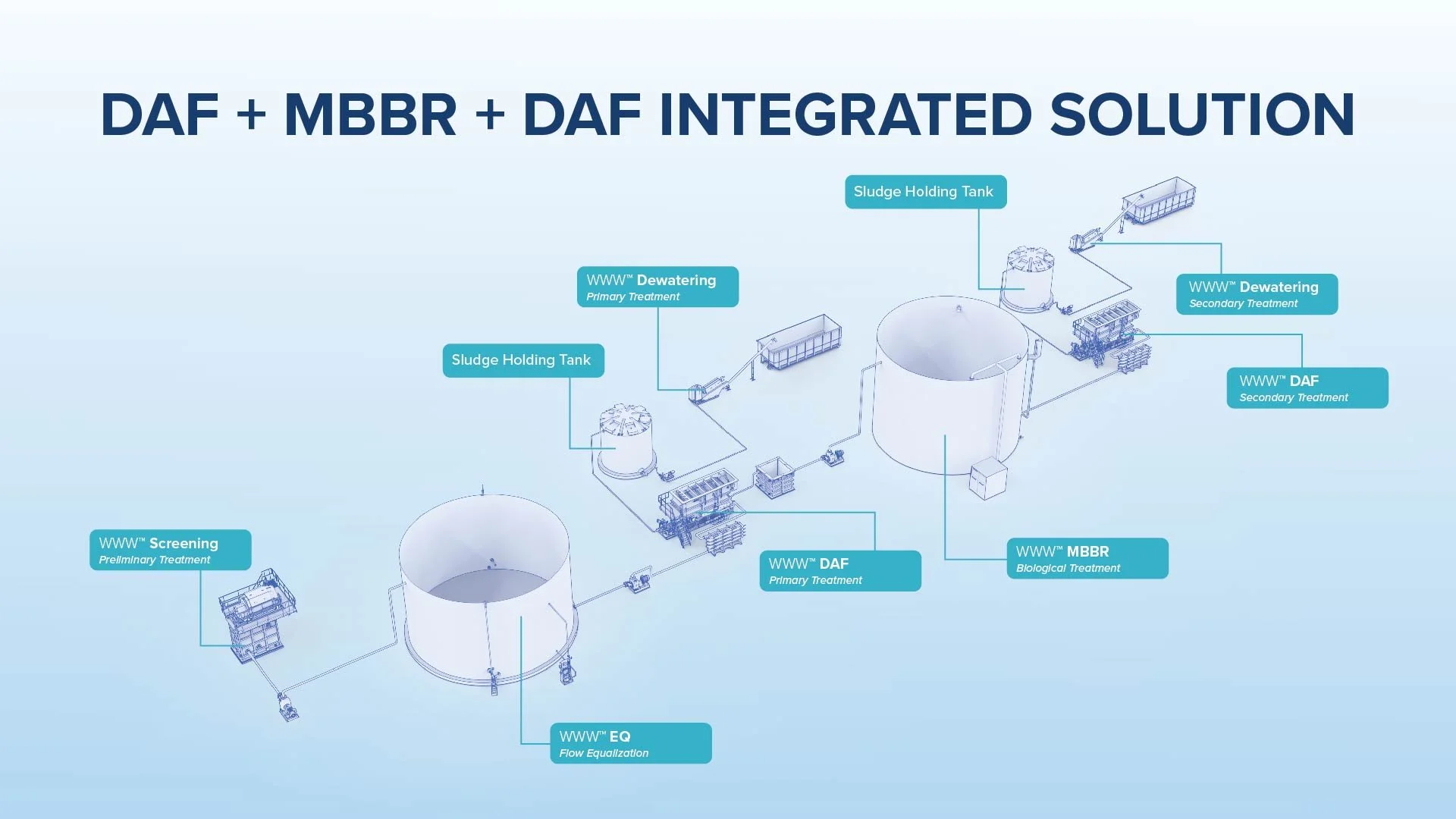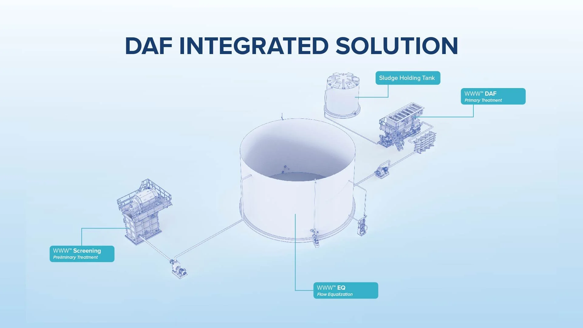 WWW™ DAF Dissolved air flotation (DAF) systems remove TSS (total suspended solids, F.O.G. (fats, oils, greases) and non-soluble organics by dissolving air into pressurized water.